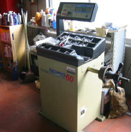 タイヤ&ホイール組付け後、ホイールのバランスを測定し、調整します。