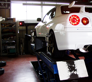 2WD、4WD車のエンジンの出力を測定し、車の不具合やエンジンのチューニング状態を確認し、チューニング内容の見直しやチューニング方法の検討をして、エンジン出力の向上を図ります。